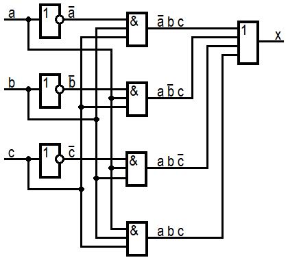 Применив преобразования к вышеуказанной формуле, схему на рис. 1 можно упростить, такая схема изображена на рис. 2: